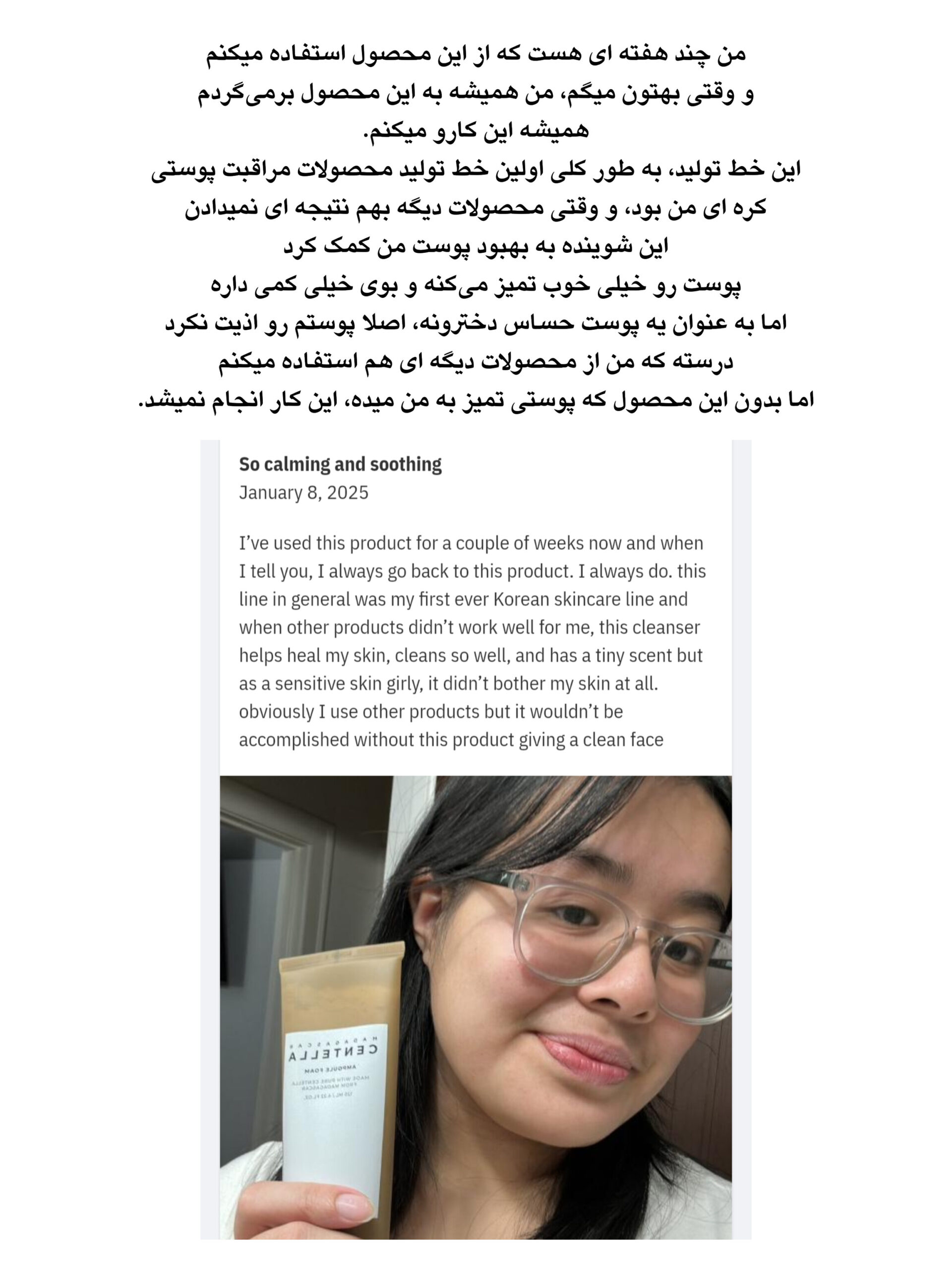 دارای سطح ph ایده آل ۵ و بدون احساس کشیدگی پوست بعد از استفاده