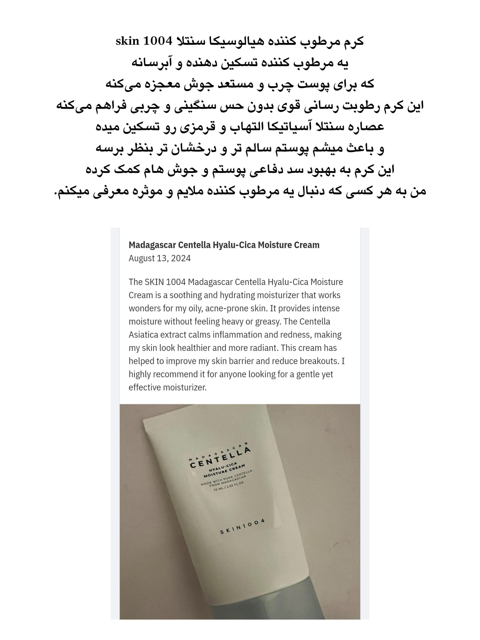 حاوی ۵۰ درصد سنتلا آسیاتیکا برای تسکین رفع تحریک های پوستی